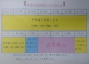 年末年始営業日のお知らせ!!