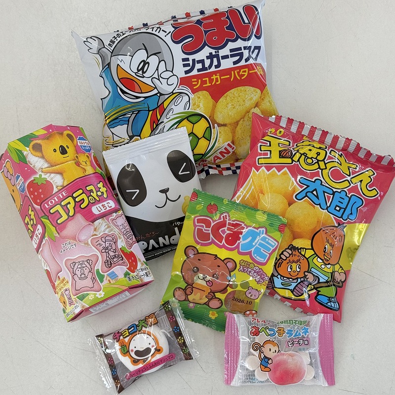 スナックからキャンディ、グミにガムチョコレートといろんなタイプのお菓子は入っているのでお子様にも飽きずに食べていただける満足度120%!
