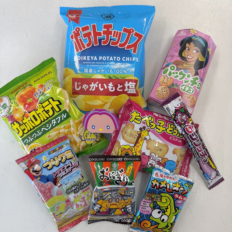 スナックからキャンディ、グミにガムチョコレートといろんなタイプのお菓子は入っているのでお子様にも飽きずに食べていただける満足度120%!