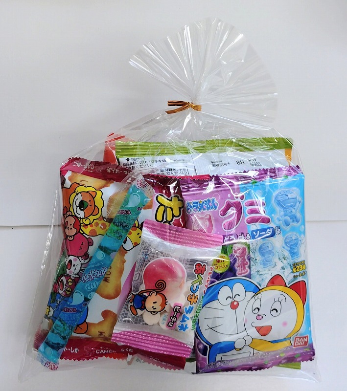 お子様の大好きなクッキーやわたがしなどが入っていて幼稚園の先生などにも好評頂いています。