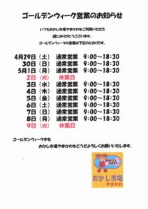 G.W営業日のお知らせ!
